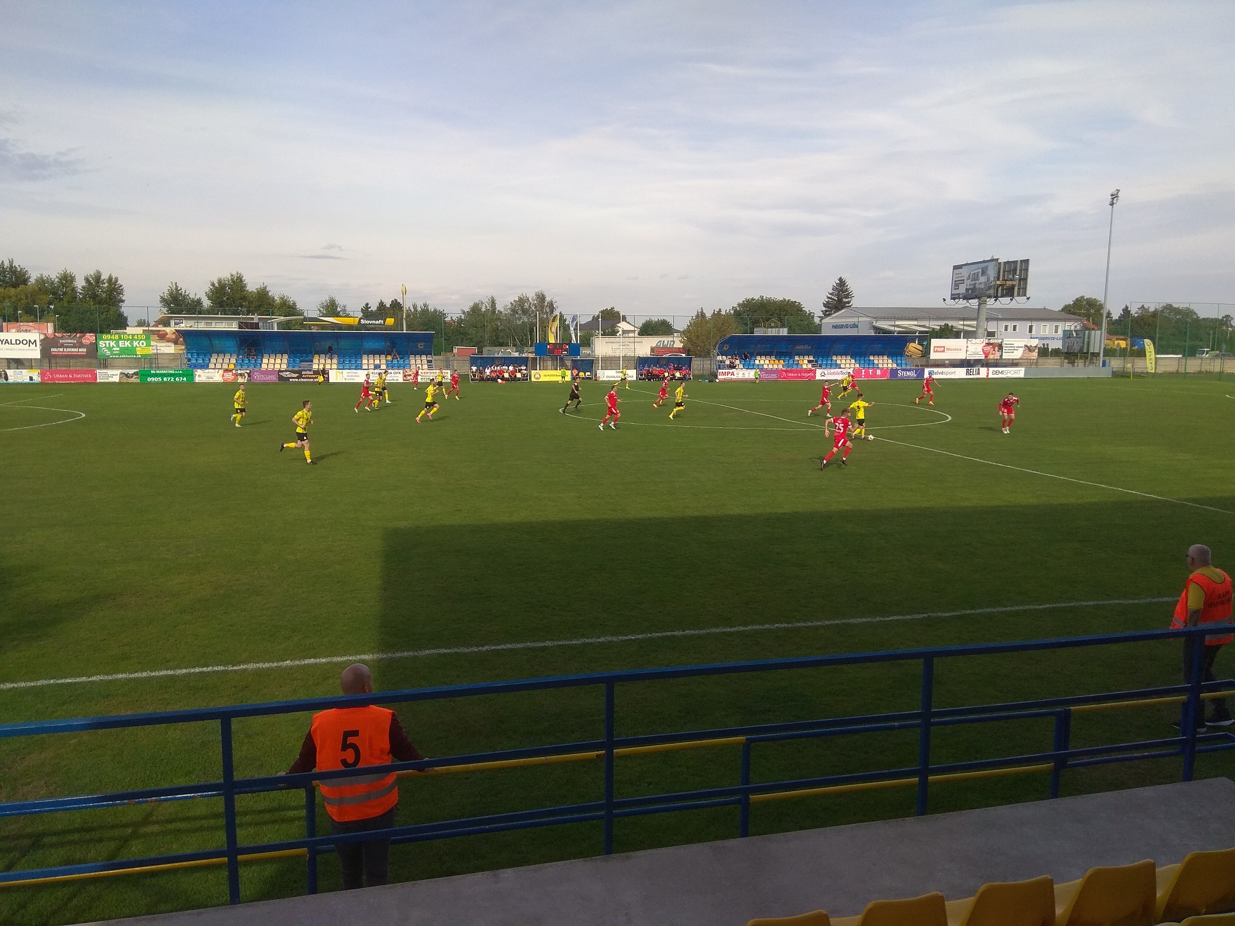 Dunajská Lužná, obec 20 kilometrov vzdialená od Bratislavy, sa môže pochváliť zaujímavým futbalovým areálom. Ak som dobre videl, tak okrem hlavnej plochy, obklopenej štyrmi tribúnami, sú tu aj ďalšie dve tréningové plochy. Nie náhodou tento areál v tejto sezóne hostí až dva futbalové kluby.